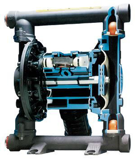 氣動雙隔膜泵采用壓縮空氣、氮氣或天然氣作為動力。主定向(氣動)控制閥將壓縮空氣分配至氣體腔室,向隔膜的內(nèi)表面上施加均勻壓力。同時排出的氣體從泵另一側(cè)后方通過氣閥組件導向端口排出。